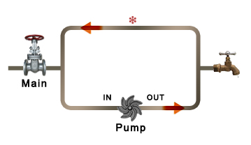 Here’s a puzzler for you.  Let’s say you have a hot water circulating system in your house, designed to produce hot water nearly instantly when you open the faucet.  This system is essentially a closed loop of piping with a pump in it.