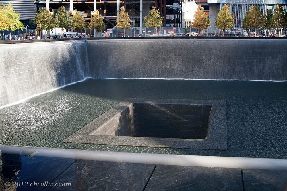There is a giant pit in the center of each pool. It looks like a drain. Thousands of lives, going down the drain, on and on, for as long as you can stand to watch.