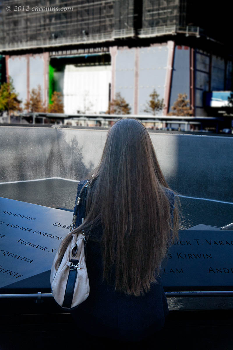 This woman’s hair cascaded over her head like the water falling into the pool beyond. I wondered what she was thinking as she stared into this display of nothingness.
