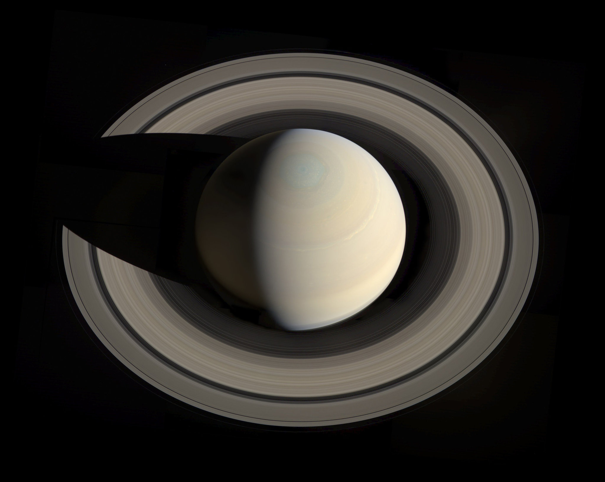 The NASA spacecraft Cassini shot this photo while orbiting Saturn, the sixth planet in our solar system, nine times farther from the Sun than the Earth is.  Nothing special, eh?  Well, I scanned a copy of this photo, hopped in the time machine* behind my garage, and paid a visit to Galileo Galilei at his villa at Arcetri, Italy, where he was under house arrest by the Vatican for suggesting that the Earth was not a stationary body.