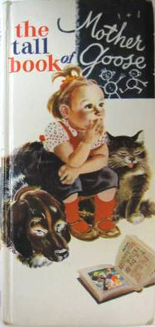 hen I was very little, I remember reading rhymes from the book “The Tall Book of Mother Goose” (pictured at right). It was my older sister’s book, and it turns out that she (and my mother) had held onto it all these years. So, the last time I visited my sister, I thumbed through the book and I was shocked to see that most of the pages had been scribbled on with crayons. The book was more or less ruined. Guess who had done that.