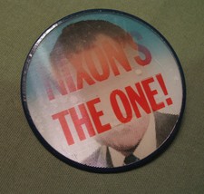 • 10 • I have a pin-on button from the 1960s that says DRAFT BEER NOT STUDENTS, along with a button from 1972 that — depending on the viewing angle — flashes a headshot of Richard Nixon or his campaign slogan, NIXON’S THE ONE. The Nixon button was one of those things my mother picked up because she thought it would be a collector’s item. Mom would be disappointed to learn that the Nixon button is being sold on eBay for about $7.50 (or $1.30 in 1972 dollars). I really should throw the buttons away… but then again, why not just let my kids do it.