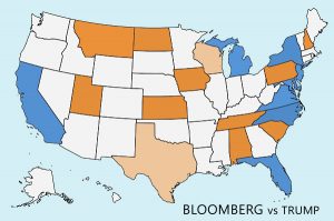 This is the first week that I have included matchup maps for Klobuchar and Bloomberg. Klobuchar seems to be staying in the race in hopes of winning Minnesota on Tuesday. Bloomberg seems to be in the race to see how desperate we really are.