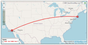 I decided that my solution — as well as those of any challengers — should be expressed in terms of a direct flight from Airport A to Airport B.  This allows the proposed path to be accurately mapped and checked via the website GPS Visualizer.