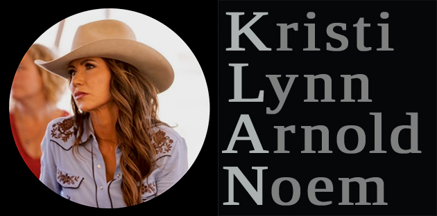 🤠 Kristi Lynn Arnold Noem, seen below in her official X photo, has been U.S. Secretary of Homeland Security in the reign of Donald II since January 25, 2025. Kristi was born to the Arnold family in 1971. At age 18, she claimed the title of South Dakota Snow Queen. Kristi appended the N to her KLAN initials at age 21 upon marrying Bryon Noem.