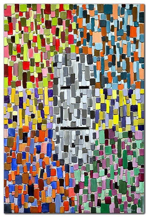 Totem is the third painting from my year in the River Arts District.  It was painted with acrylics on a 20-inch by 30-inch by 0.75-inch canvas.  The design is based on complementary colors with tile-like dimensionality and just three very-dimensional horizontal strokes.